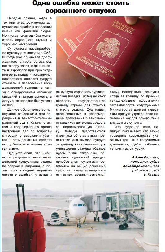 В газете "Суд да Дело в Татарстане" №22 (319) опубликована статья помощника судьи Авиастроительного районного суда г.Казани Адили Валиевой![]() |