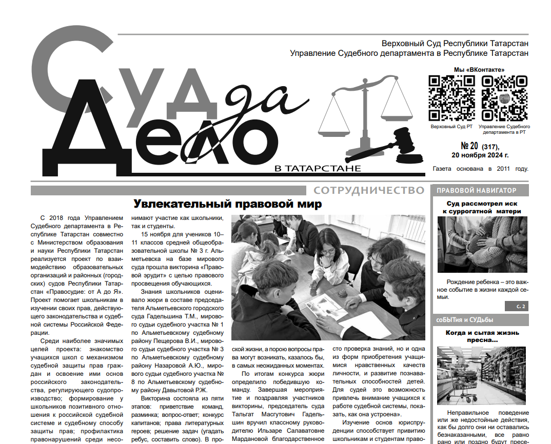 | Новый номер газеты "Суд да Дело в Татарстане" №20 (317) | версия для печати |