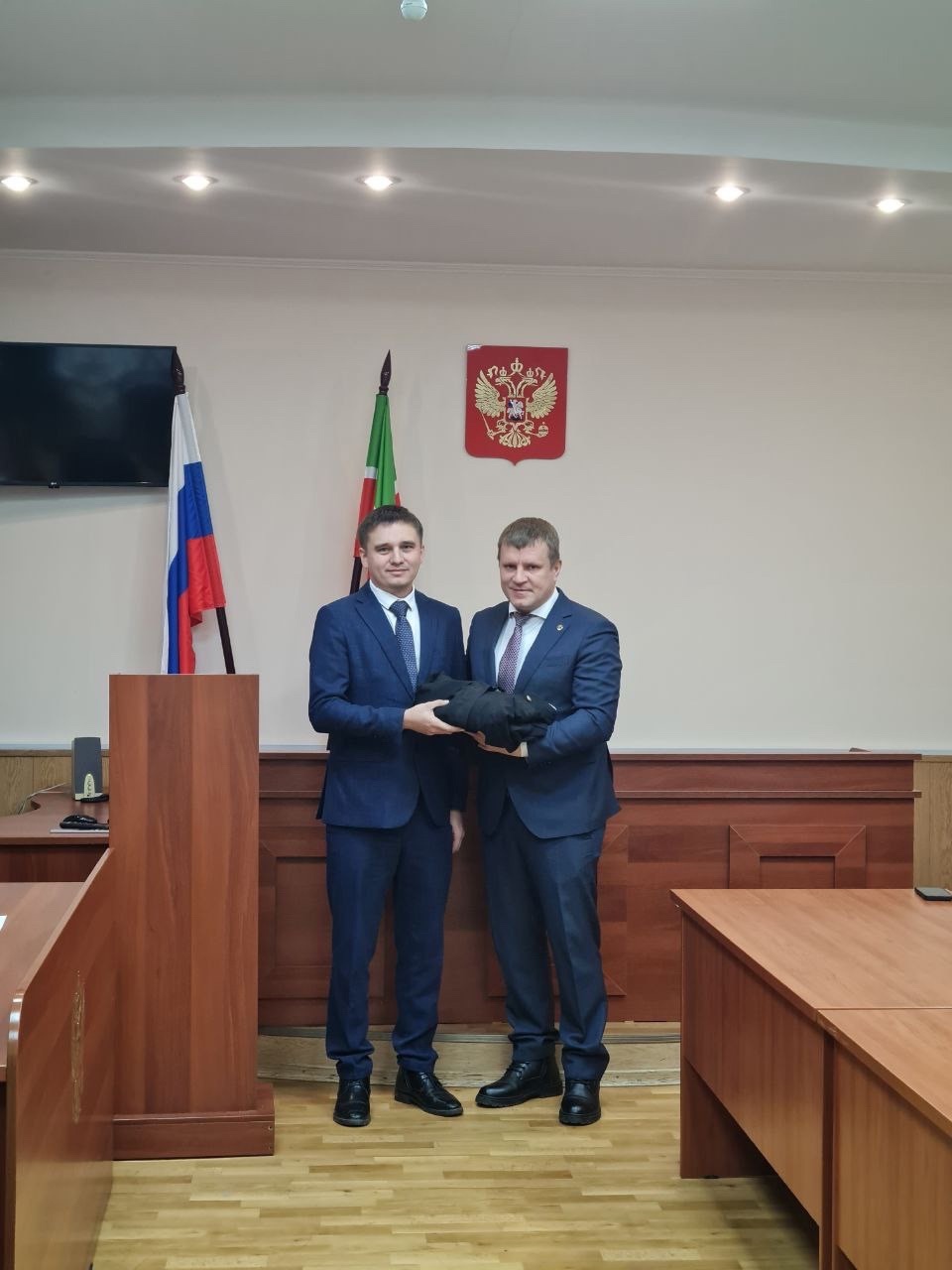| Состоялась торжественная церемония приведения к присяге мирового судьи А.Р.Ахмадиева 28 ноября 2024 года на пятом заседании Государственного Совета Республики Татарстан мировым судьей судебного участка № 1 по Авиастроительному судебному району г. Казани Республики Татарстан избран А.Р. Ахмадиев. Сегодня на общем собрании коллектива в здании Авиастроительного районного суда г. Казани, согласно требованиям Закона «О статусе судей в Российской Федерации», Алмаз Радифович произнес слова присяги: «Торжественно клянусь честно и добросовестно исполнять свои обязанности, осуществлять правосудие, подчиняясь только закону, быть беспристрастным и справедливым, как велят мне долг судьи и моя совесть». Коллектив Авиастроительного районного суда г.Казани искренне поздравляет Алмаза Радифовича со знаменательным событием и желает успехов в работе по осуществлению правосудия! ![]() |